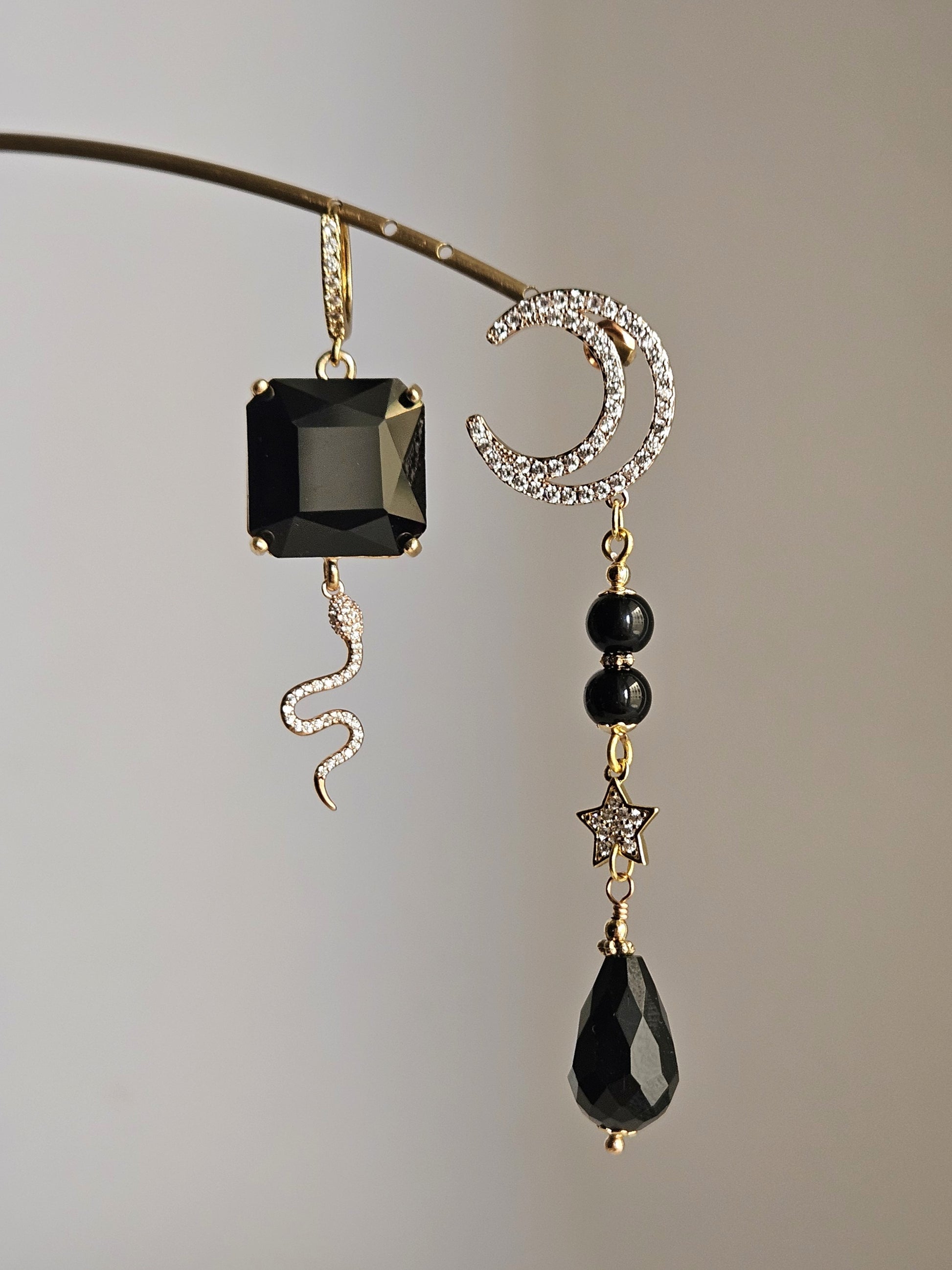 Orecchini nero luna e snake