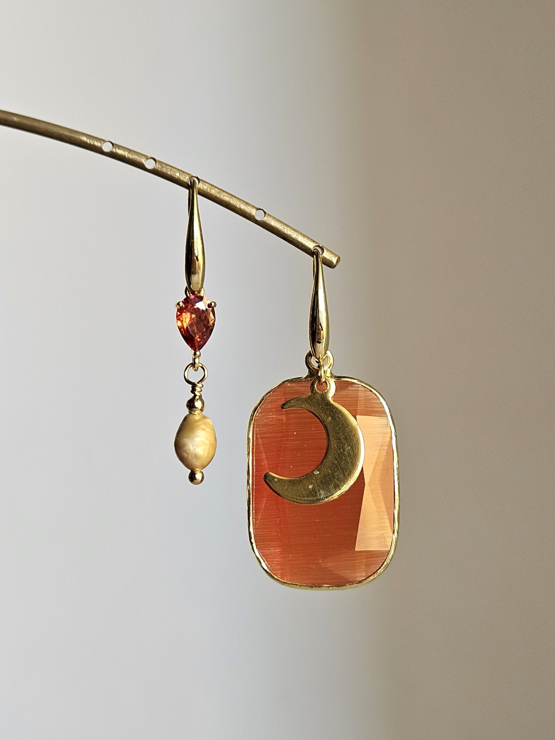 Orecchini tangerine luna e perlina